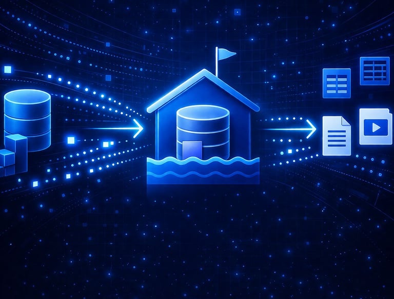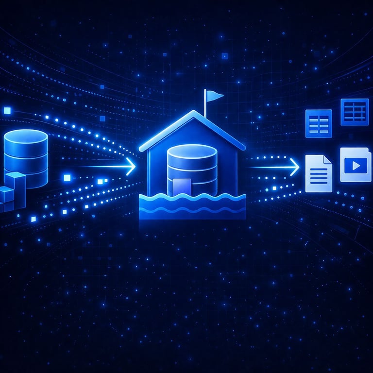Arquitectura Lakehouse: almacenamiento unificado de datos estructurados y no estructurados.